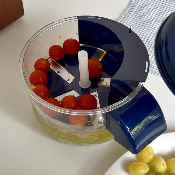Su motor automático y su diseño giratorio te permiten preparar todo 3 veces más rápido, sin riesgo de cortarte y sin ensuciar.